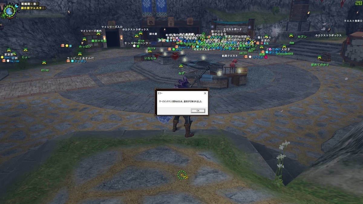 サーバーとの接続が切れてからも動けたので最後の挨拶。